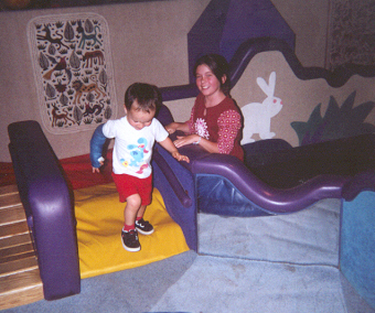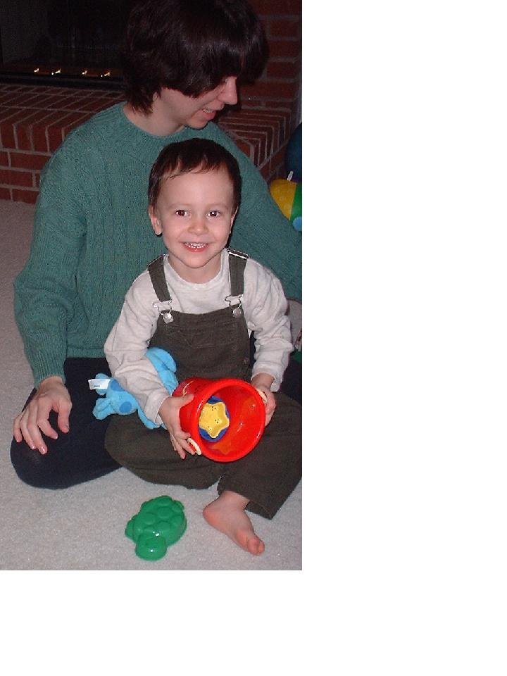 He was getting along much better with his sister. He loved to be her clown, usually by getting into trouble running on the couch. (After one broken arm, that was the end of that!) When Mom kicked him off the couch, he tried to get Melissa to chase him around the room. On the other hand, he didn't want to share his toys with her, and pushed on her like he pushed on the cat.