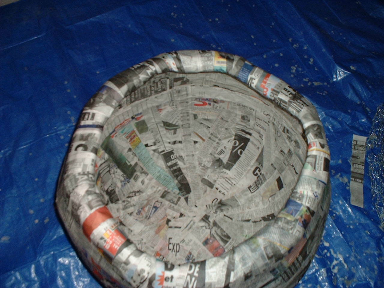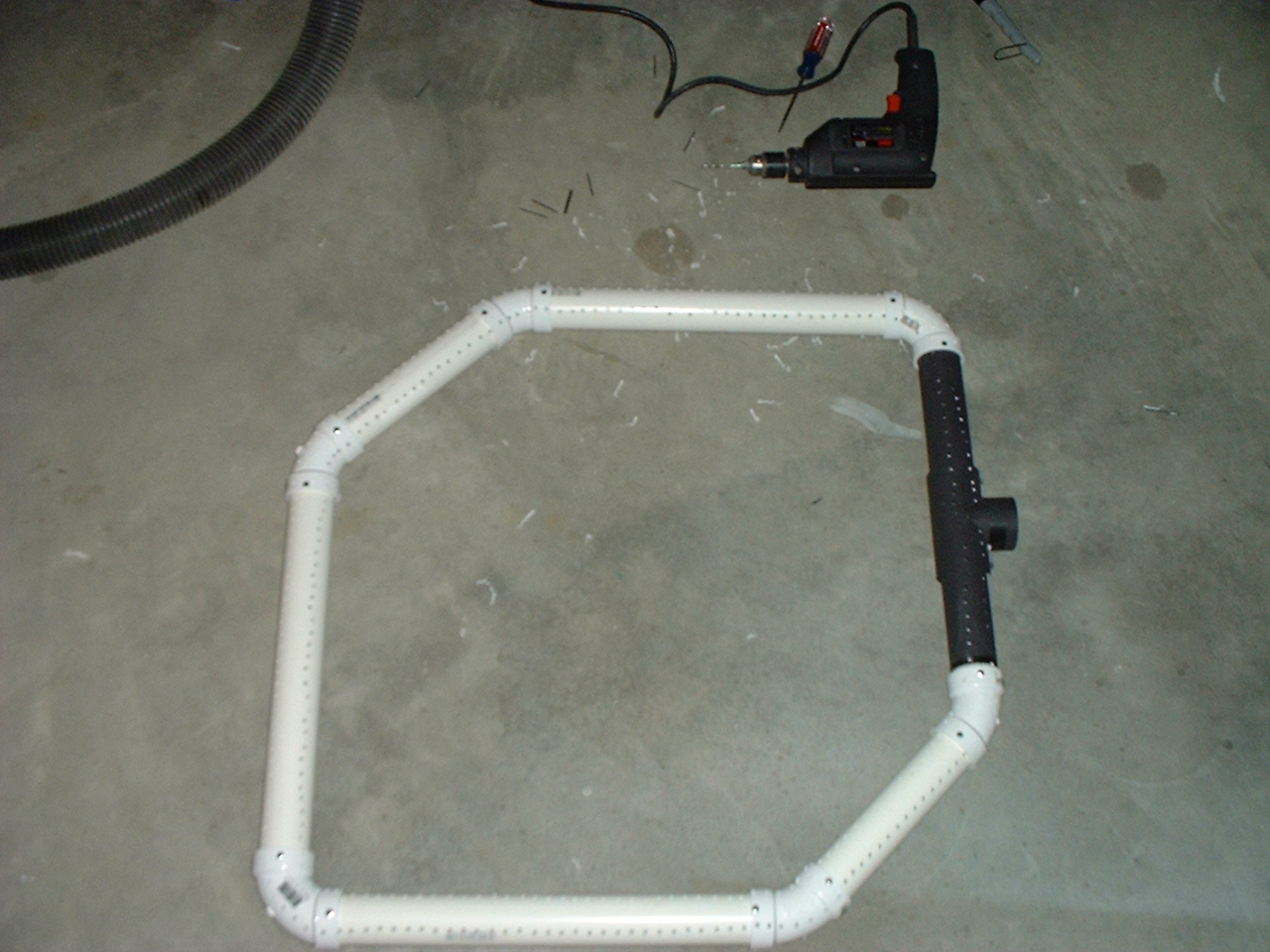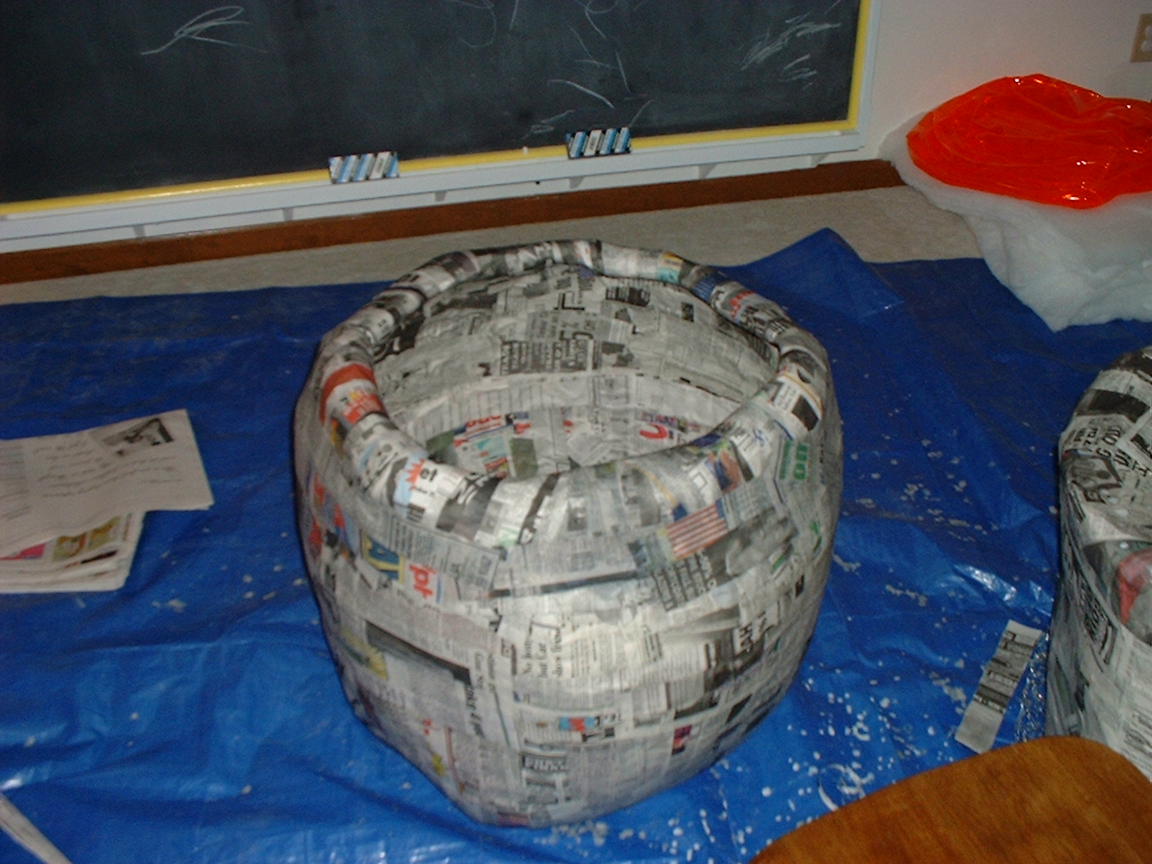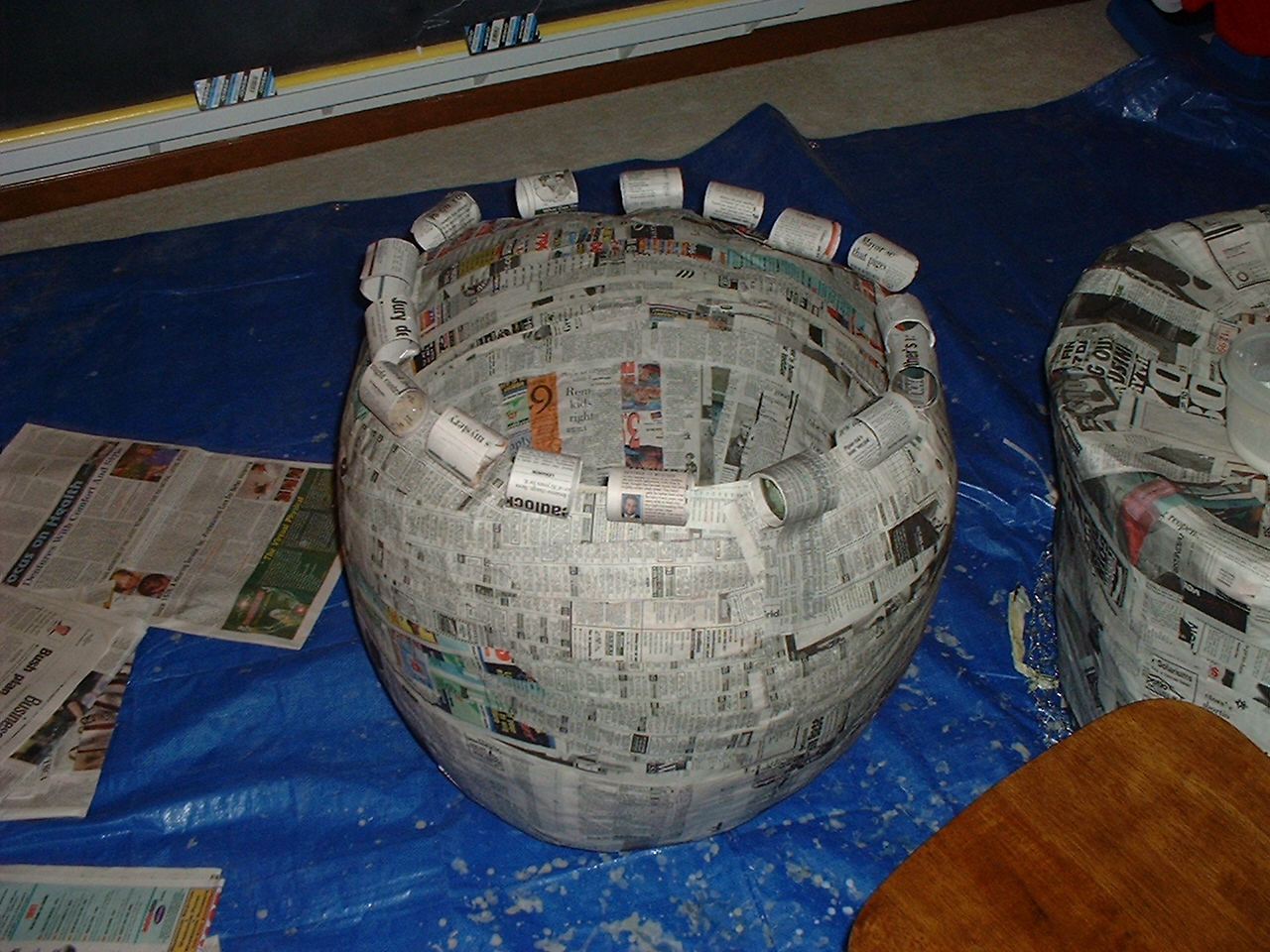Cauldron with Cellophane FlamesThese were inspired by the 'burning town' scene at the Pirates of the Caribbean ride at Disneyland. I built a PVC frame to deliver air from my shop-vac to the cellophane cutout flames to make them dance. Coupled with a string of orange lights placed under the cauldron, the effect was quite realistic when viewed from 10 feet away.