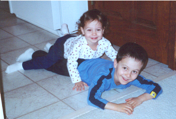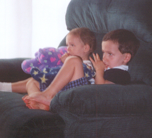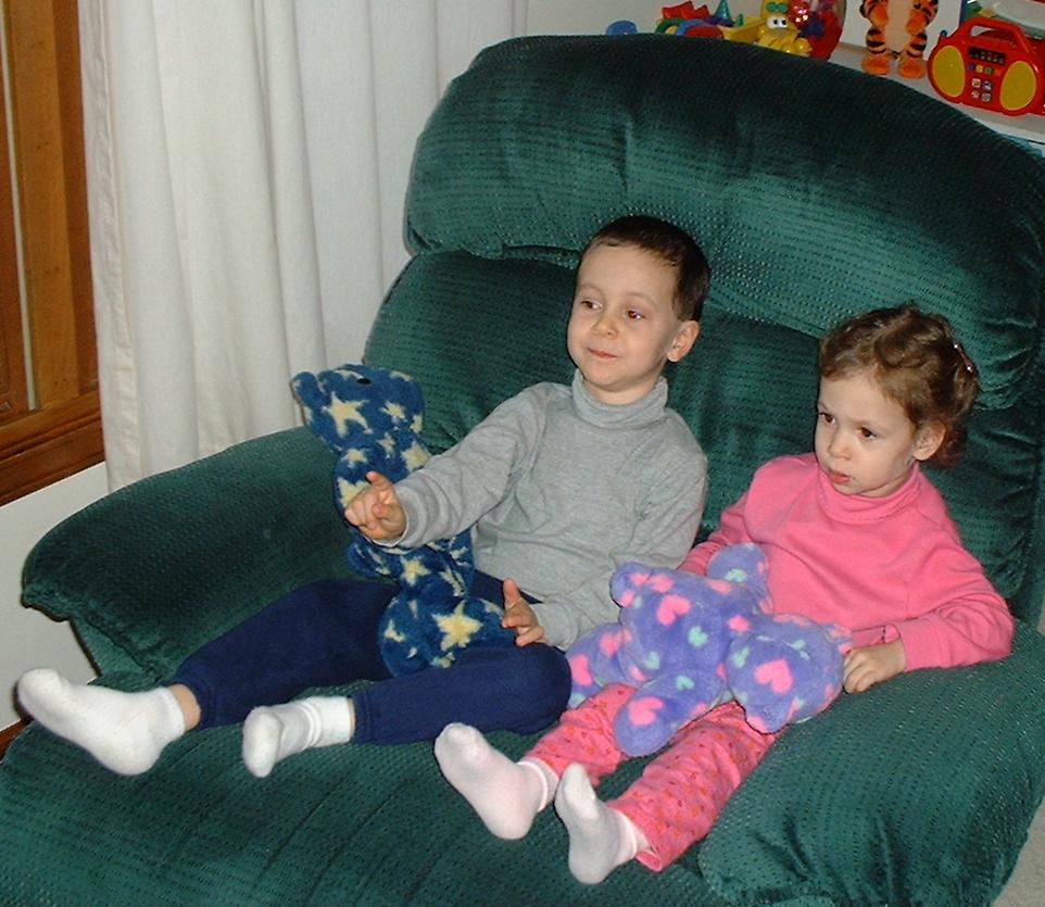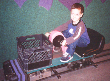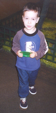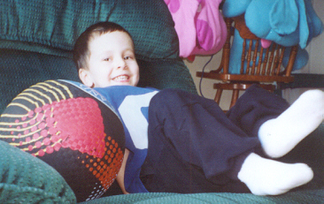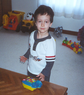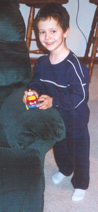 At 3½ years old, Aaron was definitely more preschooler than toddler. He could climb, run and ride a bike with ease. Aaron had a speech assessment and was placed into the Early Childhood program to assist with speech and social skill development (but his knowledge of letters and numbers was advanced for his age). The teachers said he was the sweetest, most well-behaved child. He was very eager to learn. He enjoyed school ("Breakfast, potty time, go to school!") and he got to take the bus home - he loved school busses! He could already read the words "up", "no" and "stop." Aaron also tried very hard to please, and also to help. He would get the juice out of the refrigerator (and put it back), and would throw things away when asked. Michael was trying to teach Aaron how to fetch his Cokes (and succeeded).