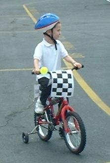 Riding his bike at the Orchard