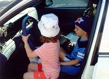 Sitting in a police car at