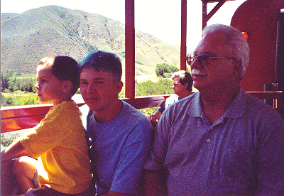 Riding the train in Idaho with Grandpa and Uncle