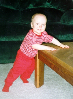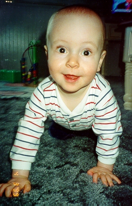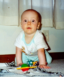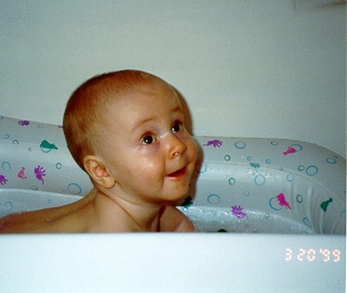 On April 19, 1999, at his check-up, Aaron weighed 20 lbs., 7 oz. and was 30¼ inches tall. The pediatrician thought Aaron might be taller than his Daddy someday!