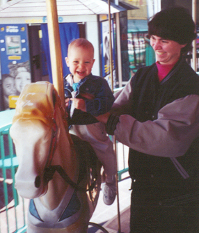 Melissa's first carousel ride, in Newport Beach, CA.