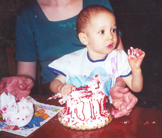 Eating - and smearing - her birthday cake.