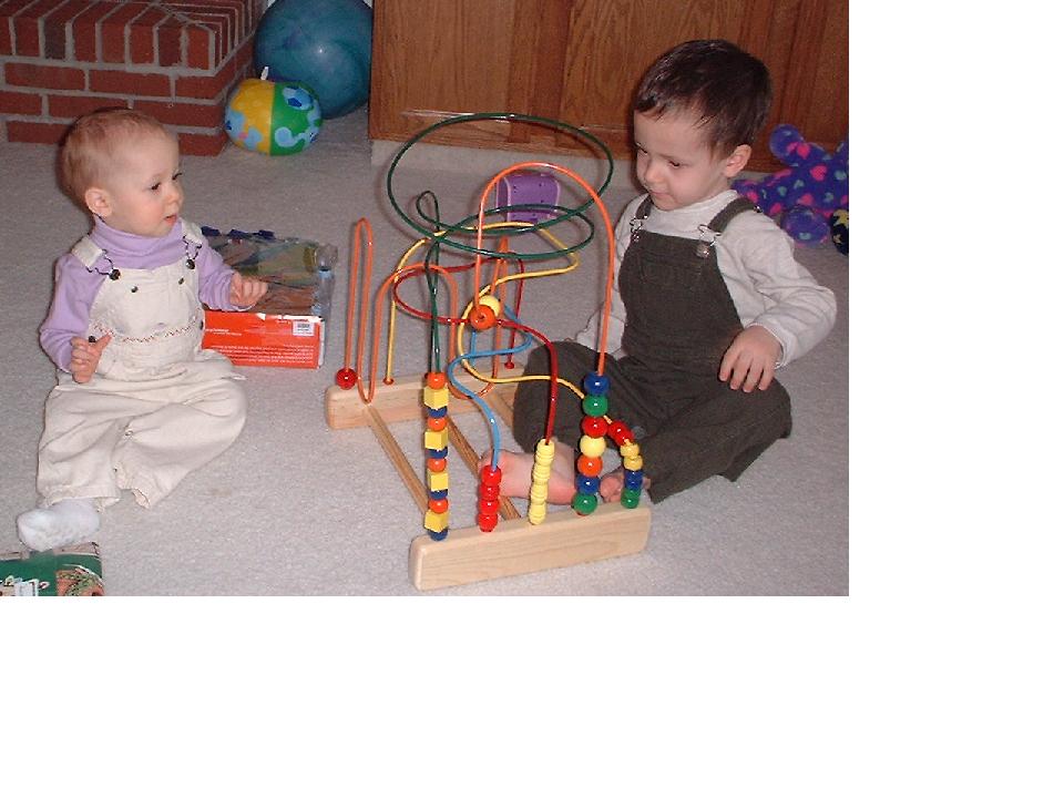Aaron sort of shares his new bead maze with Melissa.