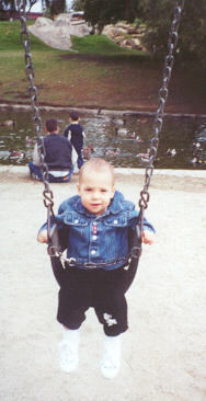Swinging at Heritage Park while Daddy and Aaron feed ducks.