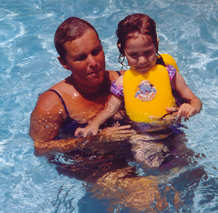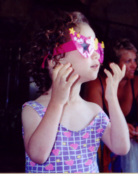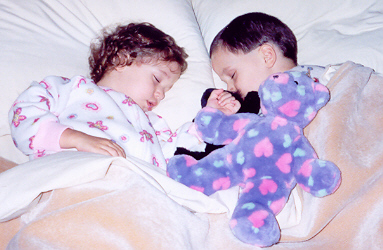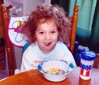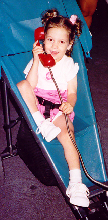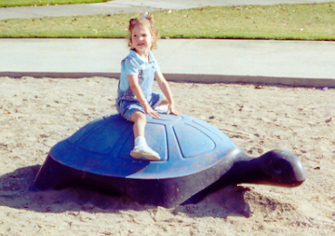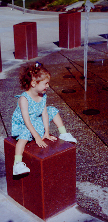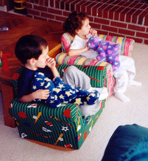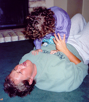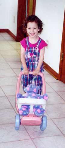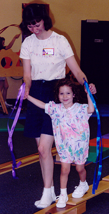 Melissa played well with Aaron, but loved to antagonize him and fight back. Sibling rivalry was alive and well in our household. However, having an older brother to learn from, she was learning fast. They had story time and computer time together, and she had learned alot from both. She also had a very vivid imagination - even her little dinosaur drove the toy school bus! She attended a church-run Parents-Time-Out program once a week, and loved learning and playing with the kids her age. On the other hand, Melissa still thought she was as big and dexterous as Aaron, and usually found out through a new bruise or skinned knee that she was not. But she was catching up fast!