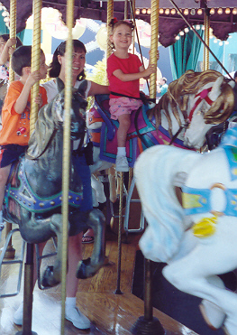 Riding the carousel at Adventure City.