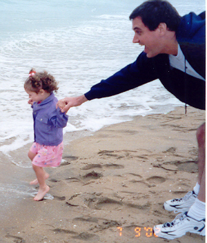 Playing in the surf with Daddy.
