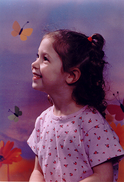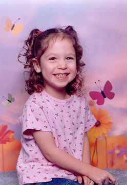 At 3 years old, Melissa (aka Missy) tried her best to keep up with her brother. She could jump and run and dance, just like him. However, she had a mind of her own with an active imagination, and could be very stubborn. She was a very typical little girl and loved dress-up, but she also liked to play camp too. She was starting to show fears, mainly being afraid of dirt and ladybugs on the floor, lint between her toes and often the cat - she put her fingers in his mouth a little too often.