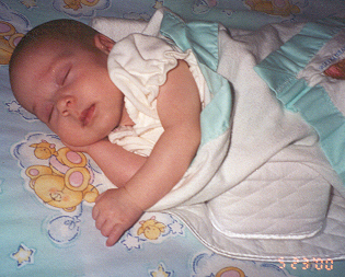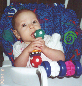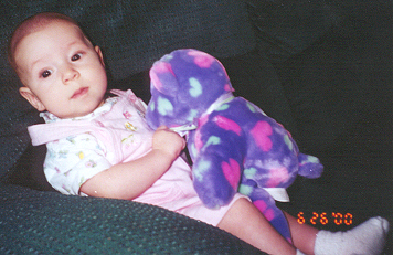 She could roll around well, and held on tight to her rattle. She had a very strong neck for her age,
