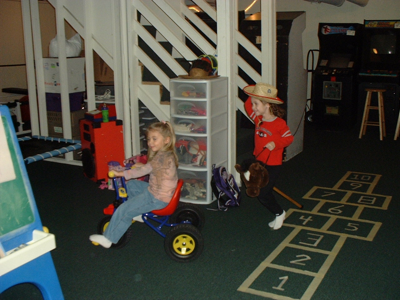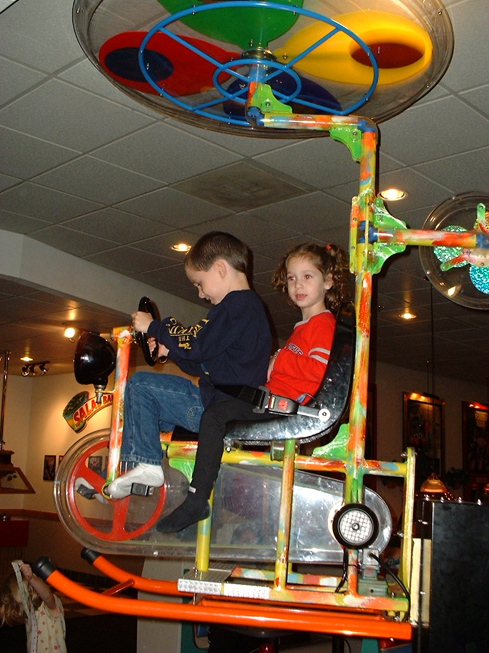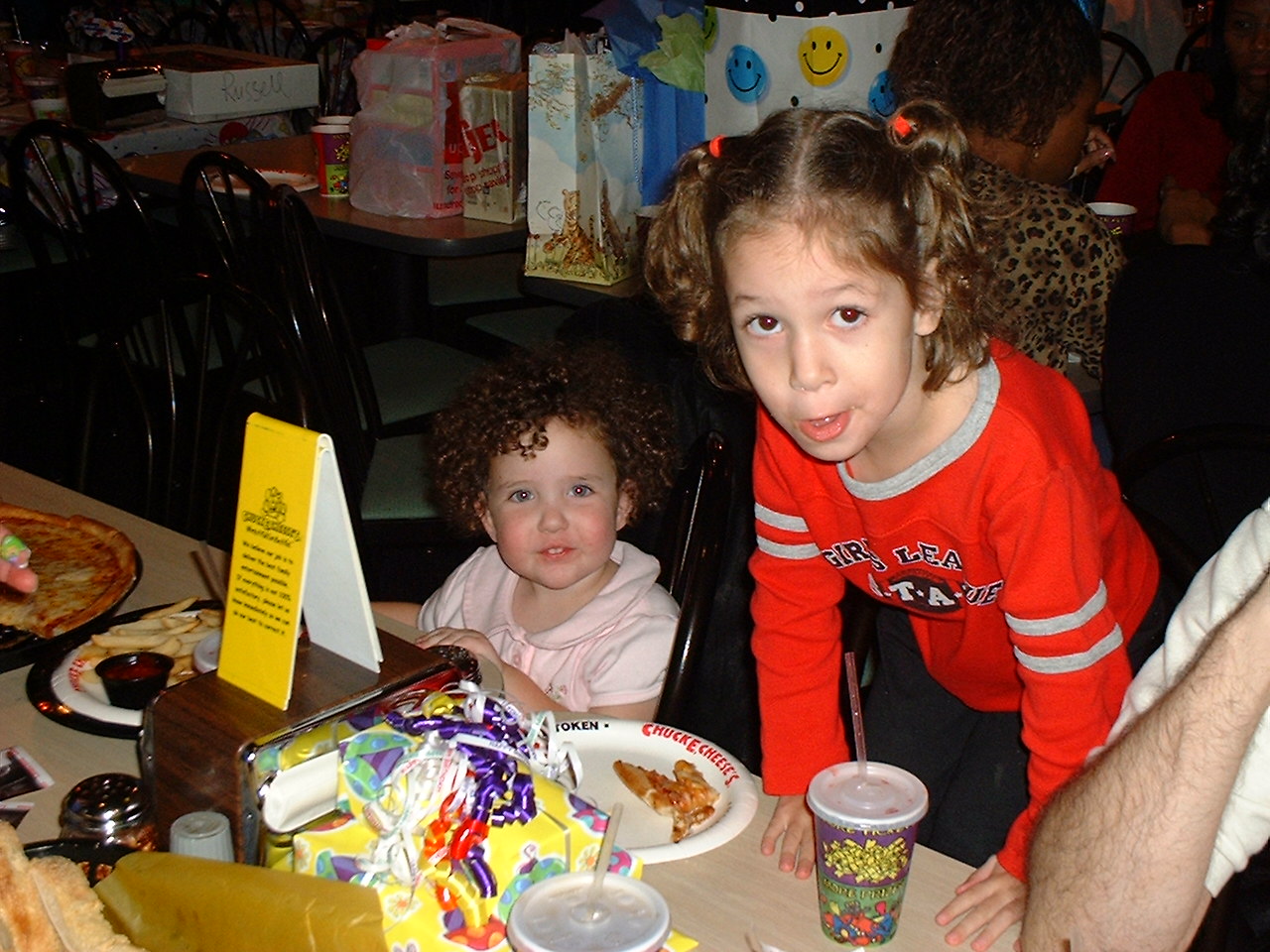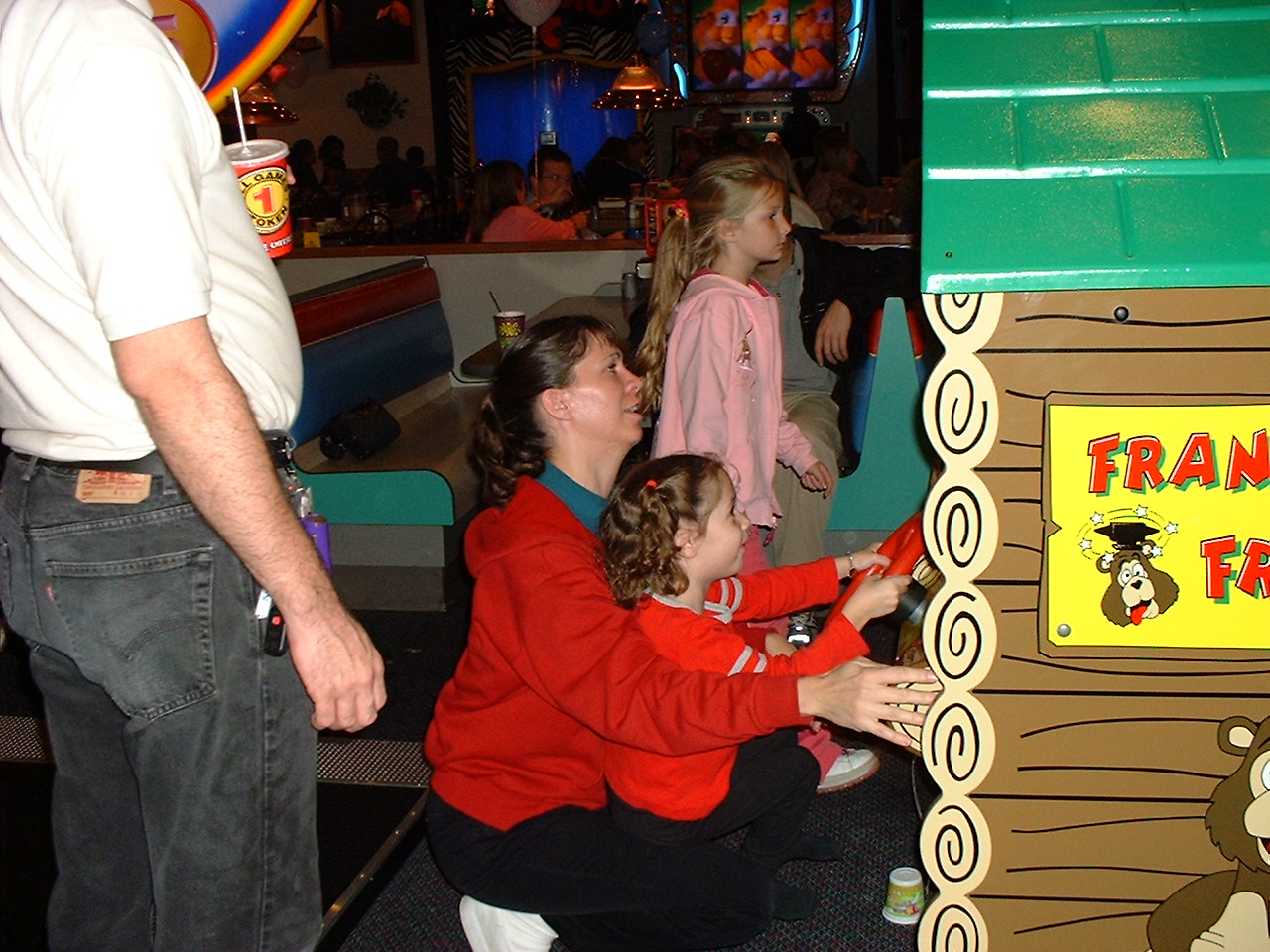 Enjoying Megan's birthday party at Chuck E. Cheese.