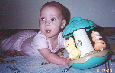 go, scooting around (doing the wounded soldier crawl) and going everywhere. Her favorite target was Aaron, though he